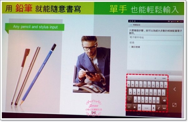 ‧支援任何鉛筆、指定的觸控筆或原子筆(導電筆尖)輸入