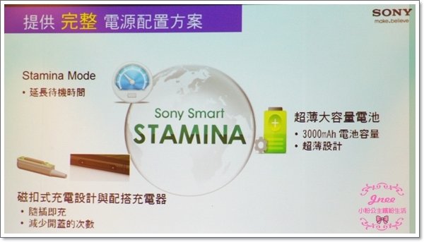 內置Sony STAMINA省電模式,可有效延長待機時間達,電池容量3000mAh。